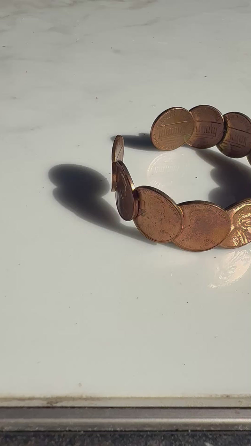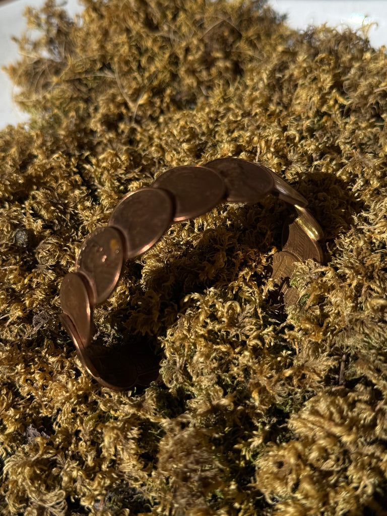 Vintage 1980’s copper penny cuff bracelet, hand made with copper American pennies. Fits most and can be adjusted. Fabulously vintage!