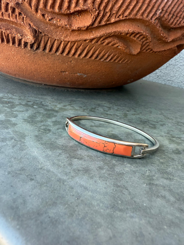 Simple, and the perfect accessory to go with your favourite jeans. Silver, with orange coral. Stamped 925. Made in Mexico