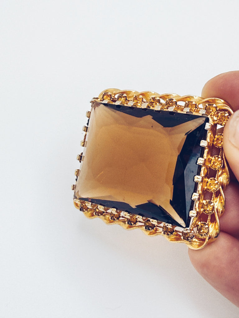 Stunning vintage Austrian Crystal faceted brooch in the prettiest shade of amber. Stamped Austria. The perfect accent to your favourite winter outfit.