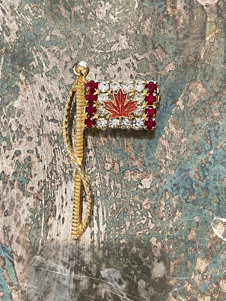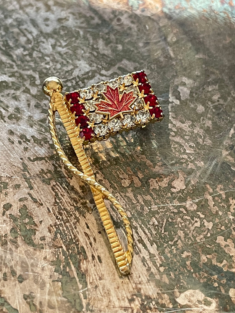 Perfect for Canada Day or any time you want to show off your National pride! Vintage sparkly Canadian flag brooch!