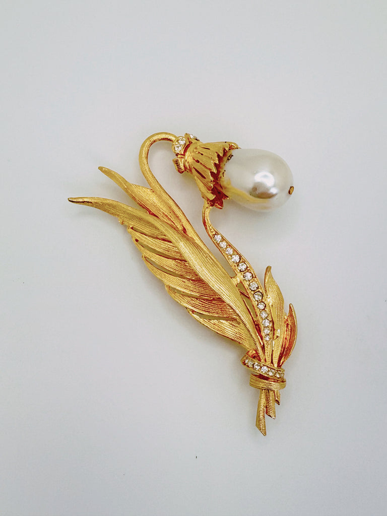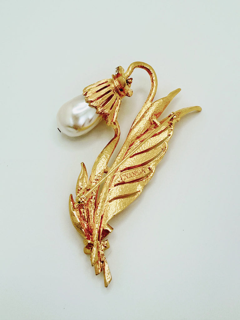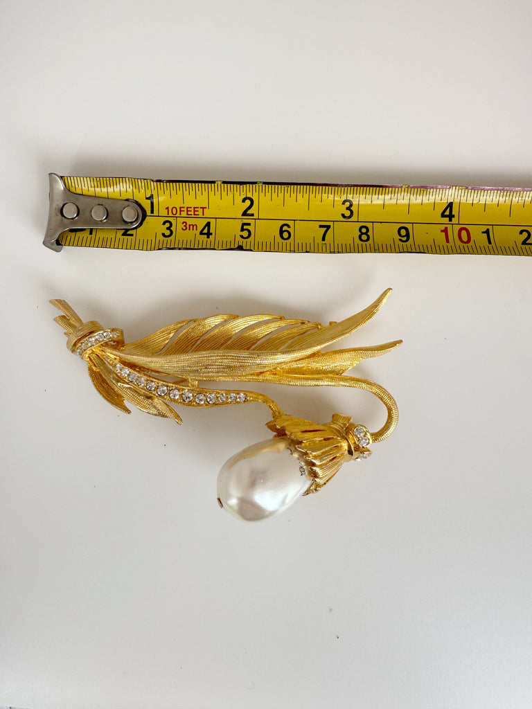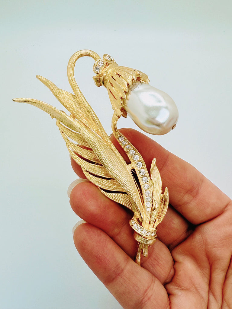 Gorgeous large brooch by Ivana Trump. This 1990’s gold plated statement piece brooch oversized brooch pin faux pearl and diamanté.