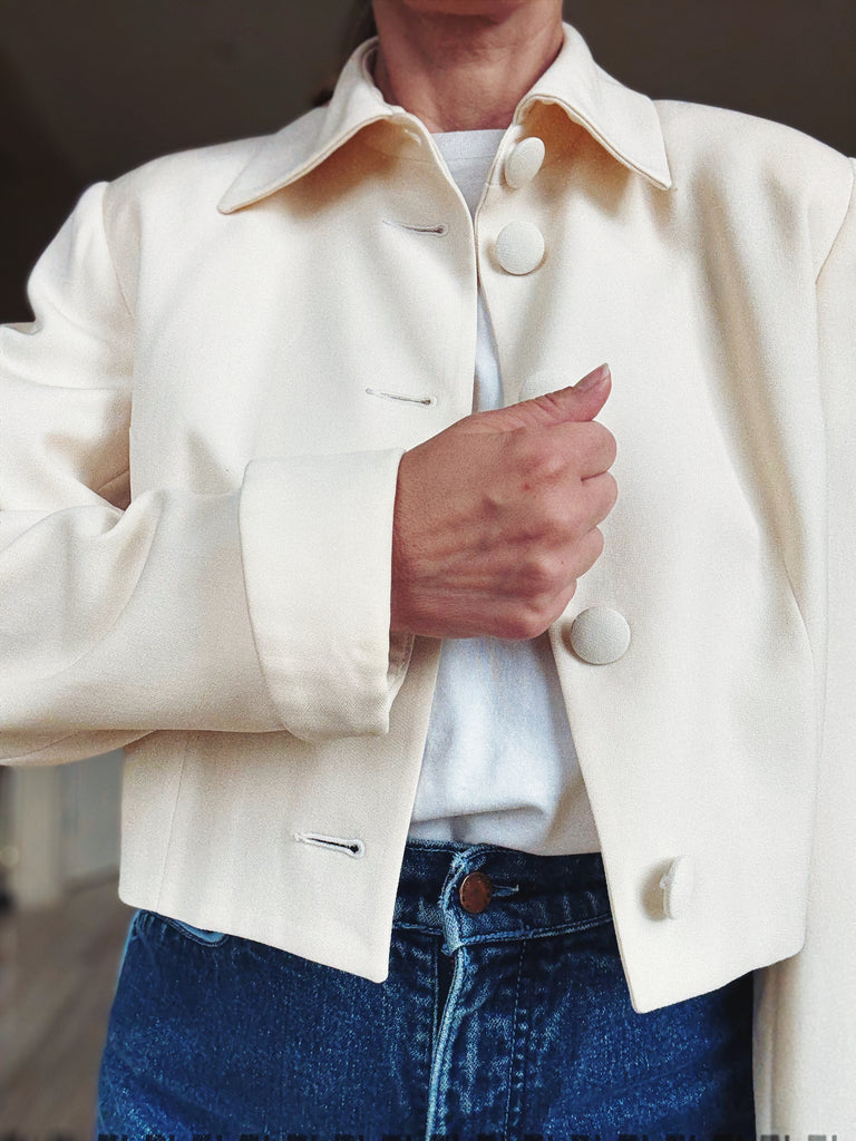Gorgeous designer vintage wool blazer, cropped and very flattering on. Made by Louben in Canada. Size 10