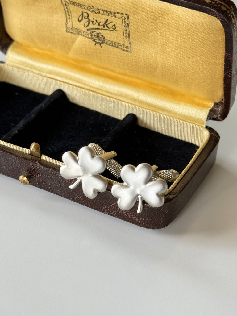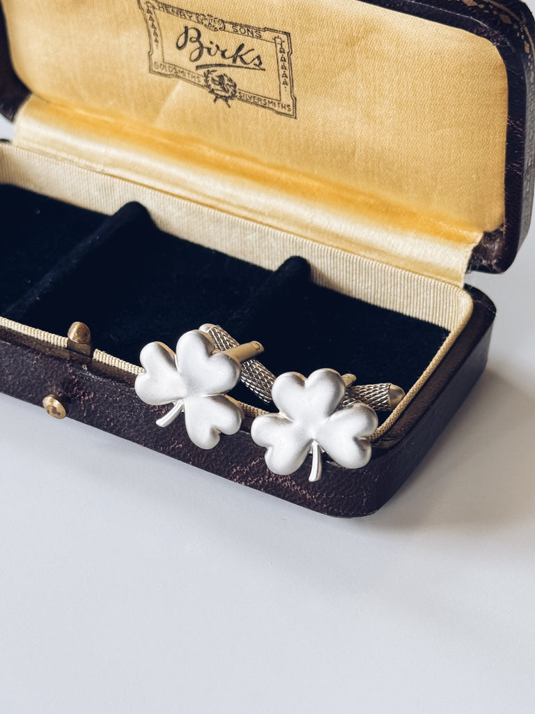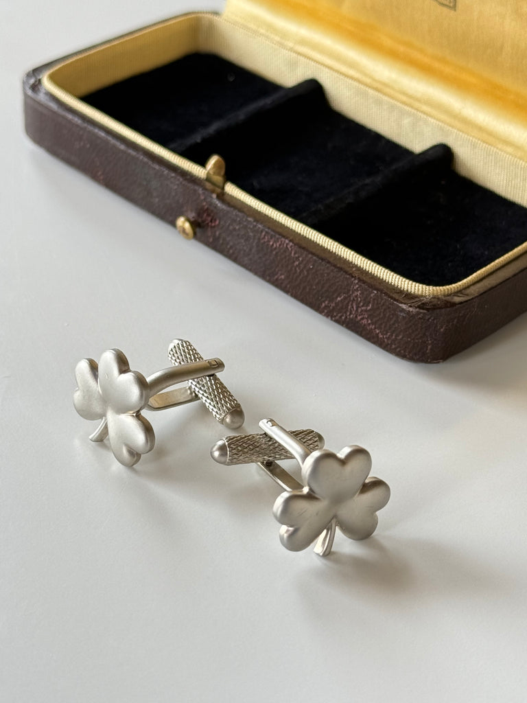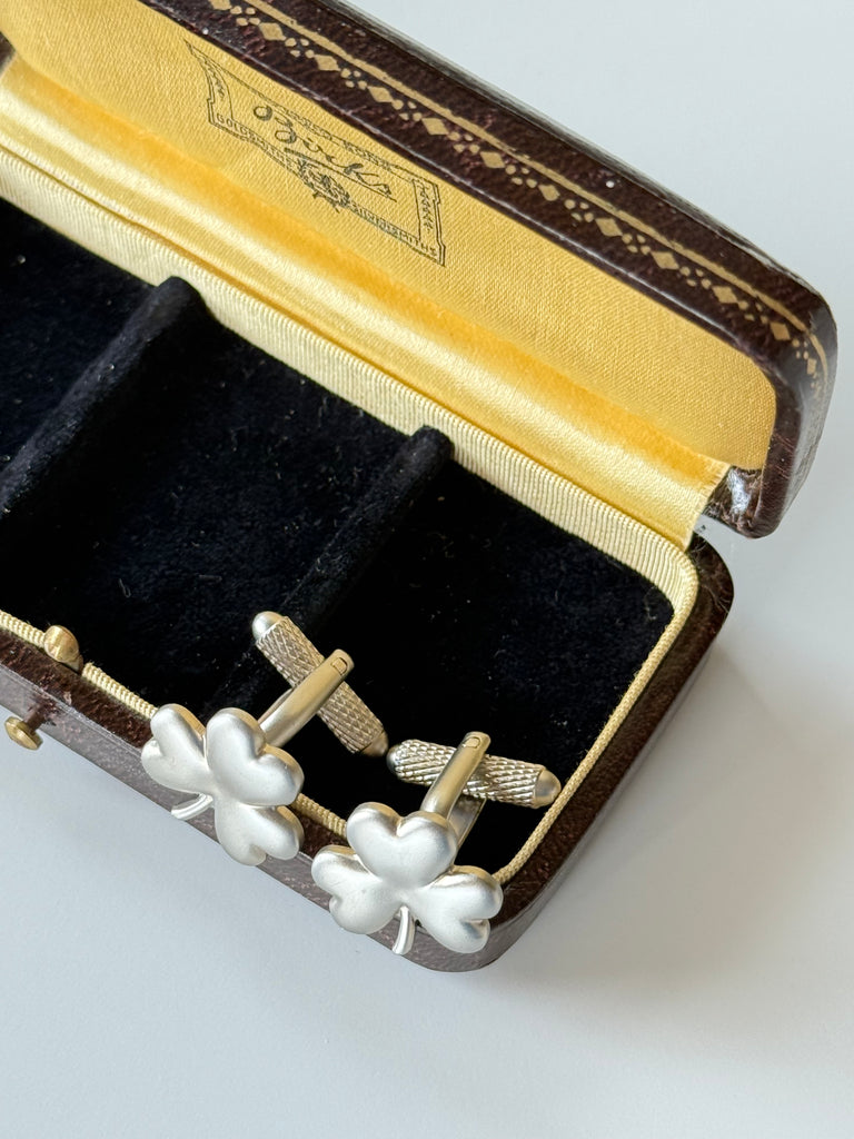 Classic, timeless, and full of Irish charm — this handsome pair of vintage shamrock cufflinks are the perfect finishing touch for a tailored look.
