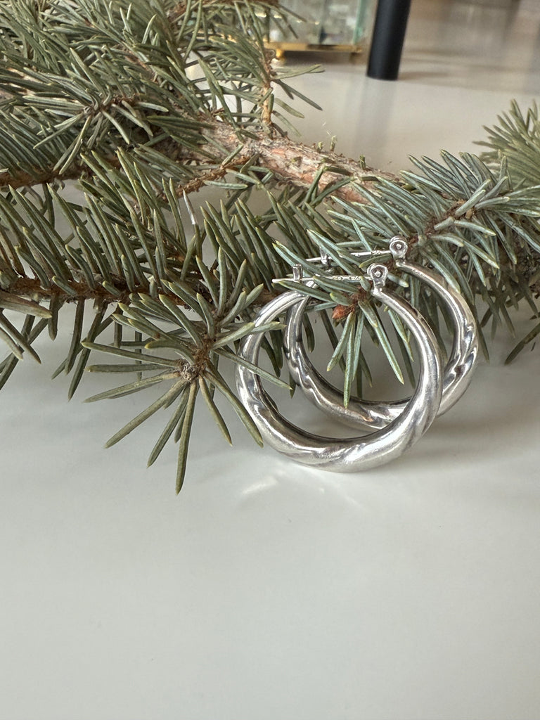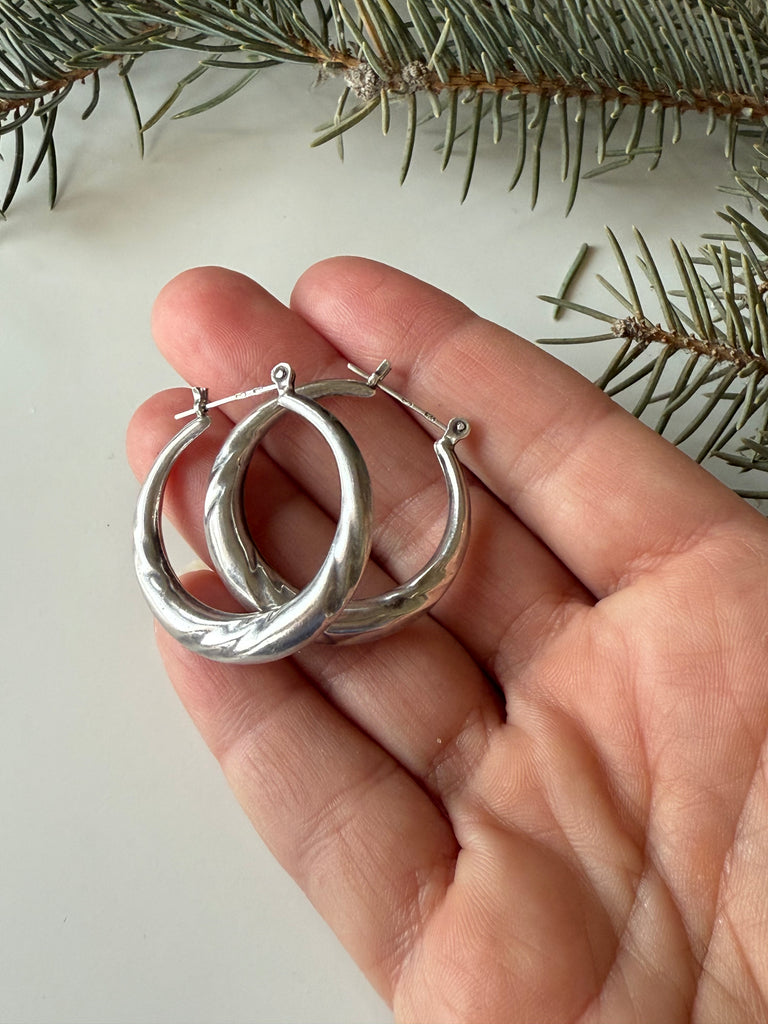Vintage sterling silver gypsy hoop earrings. Light, comfortable and very well made. These earrings are perfect for everyday, and will quickly become your go to pair!