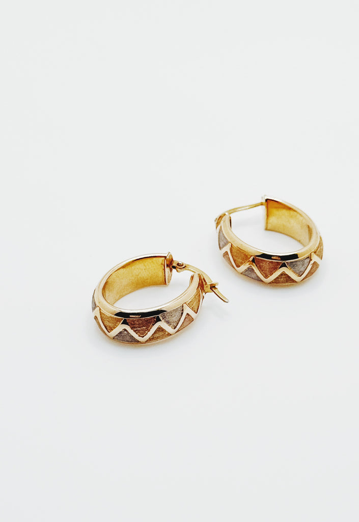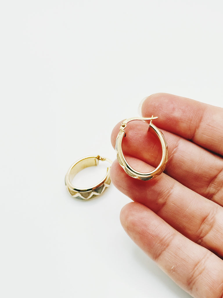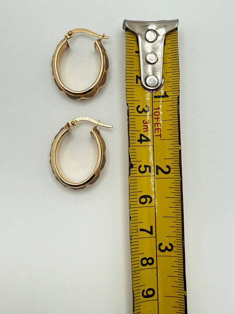 Gorgeous lady’s hinged post hoop earrings in high polished and textured yellow gold and rhodium plated yellow gold. Stamped 14k and Italy. Measures 24mm x 20mm in diameter and 8mm wide. Total weight 3.25 grams. These beautiful earrings come with a current certificate of appraisal and are valued at $975.