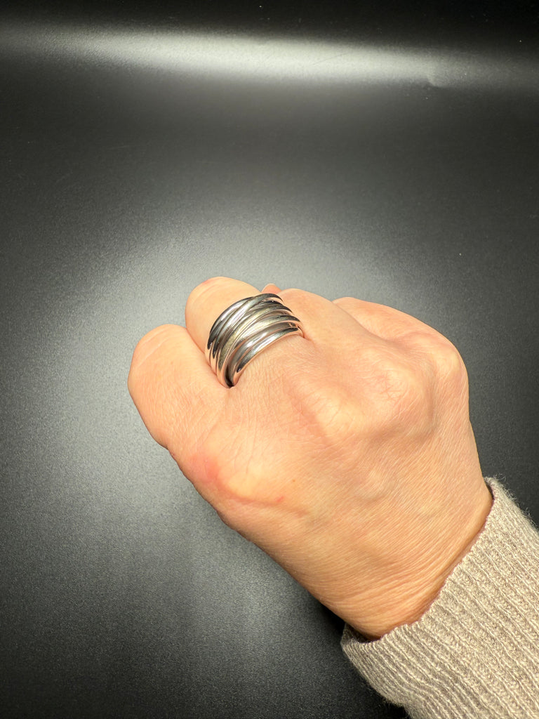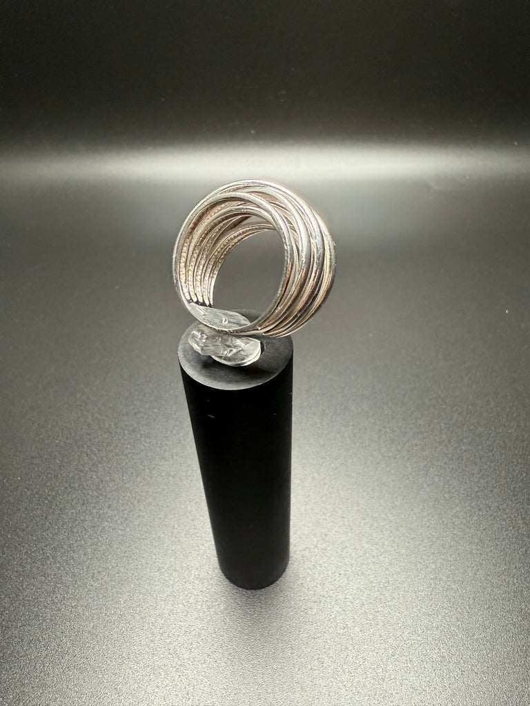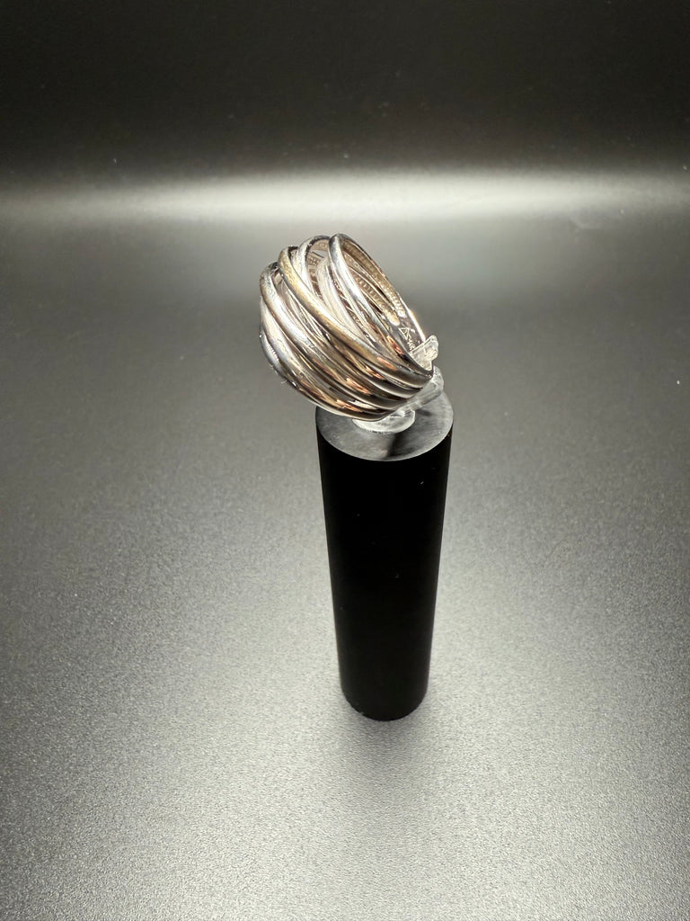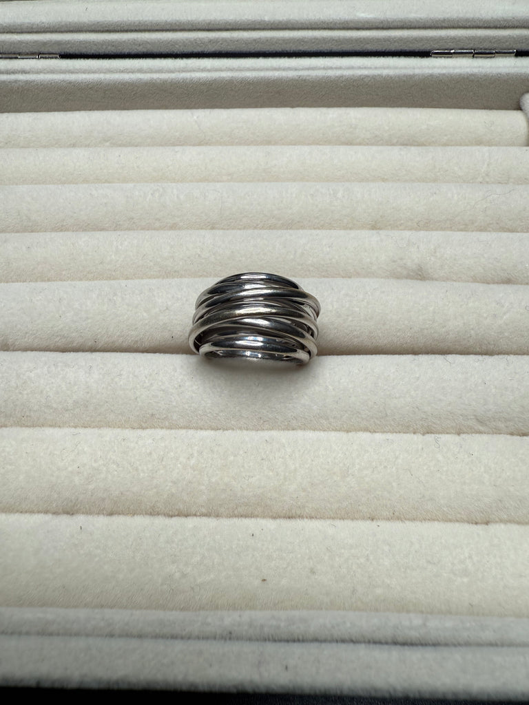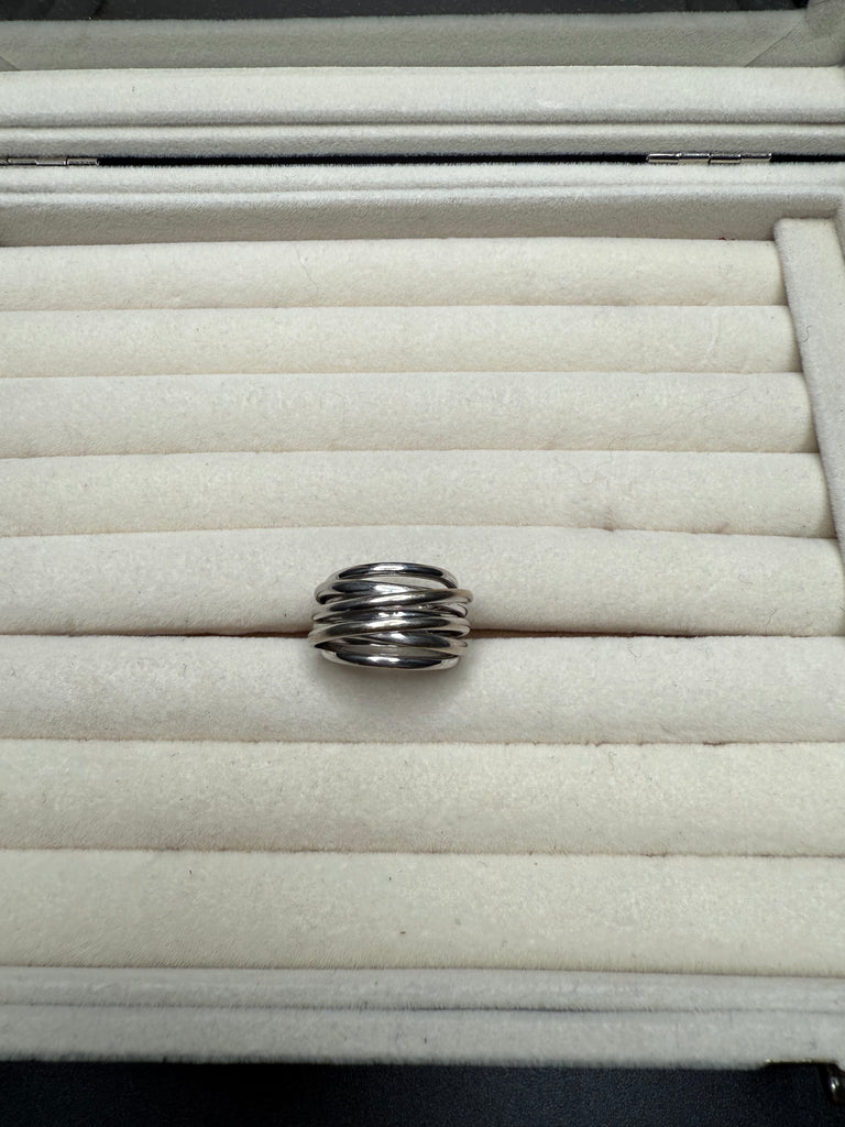 Elevate your jewelry collection with this authentic 14k white gold vintage ring, featuring an elegant layered band design. Its sculptural look adds dimension and shine, making it a unique accent for everyday wear or special occasions.