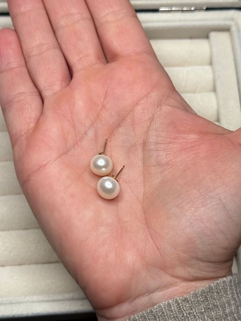 Classic. Elegant. Timeless. Every women needs a pair of simple pearl earrings in her collection. These beauties have 14k gold posts and are the perfect size for every day.