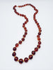 Crafted with round amber-colored beads that glow beautifully in natural light, this necklace brings together earthy warmth and classic design. Each bead is separated with golden knot spacers, giving the strand an estate jewelry look often seen in mid-century amber pieces. The marquise-shaped gold-tone clasp adds an elegant finishing touch and enhances the antique-inspired style.
