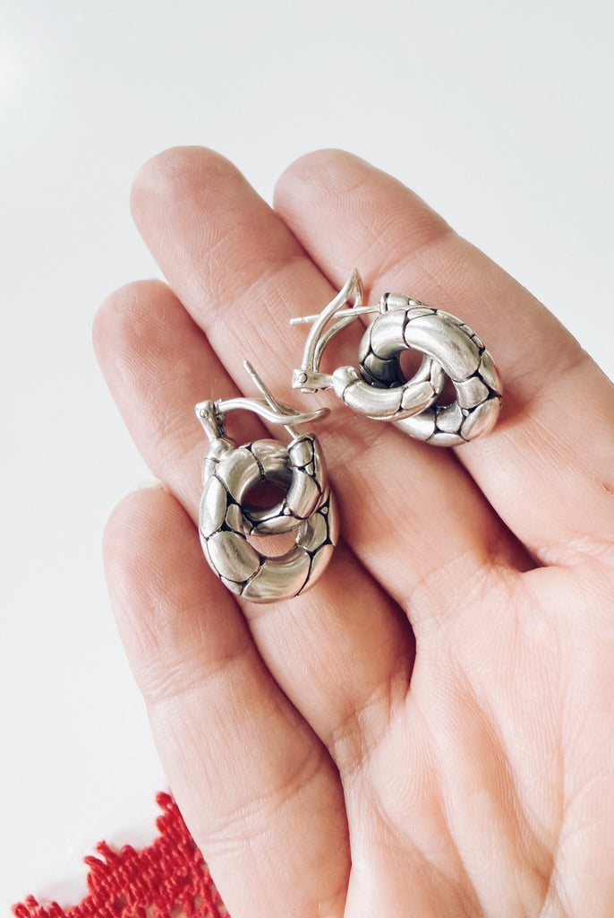 Handcrafted in Bali using traditional techniques, these sculptural hoops feature the signature segmented bamboo design that John Hardy is known for — symbolizing strength, harmony, and longevity. Their substantial weight and flawless finish give them a luxurious feel, while the classic silhouette makes them endlessly wearable.