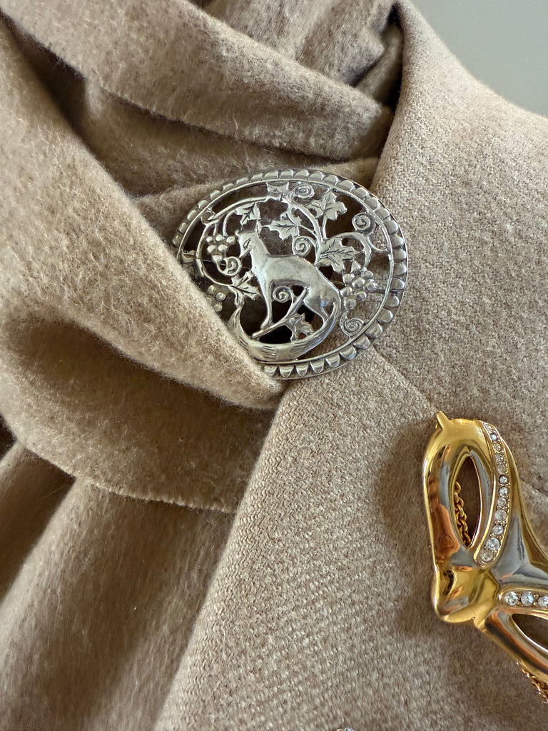 Made in solid sterling silver, it’s a beautiful statement accessory that adds character to jackets, scarves, hats, and winter knits.