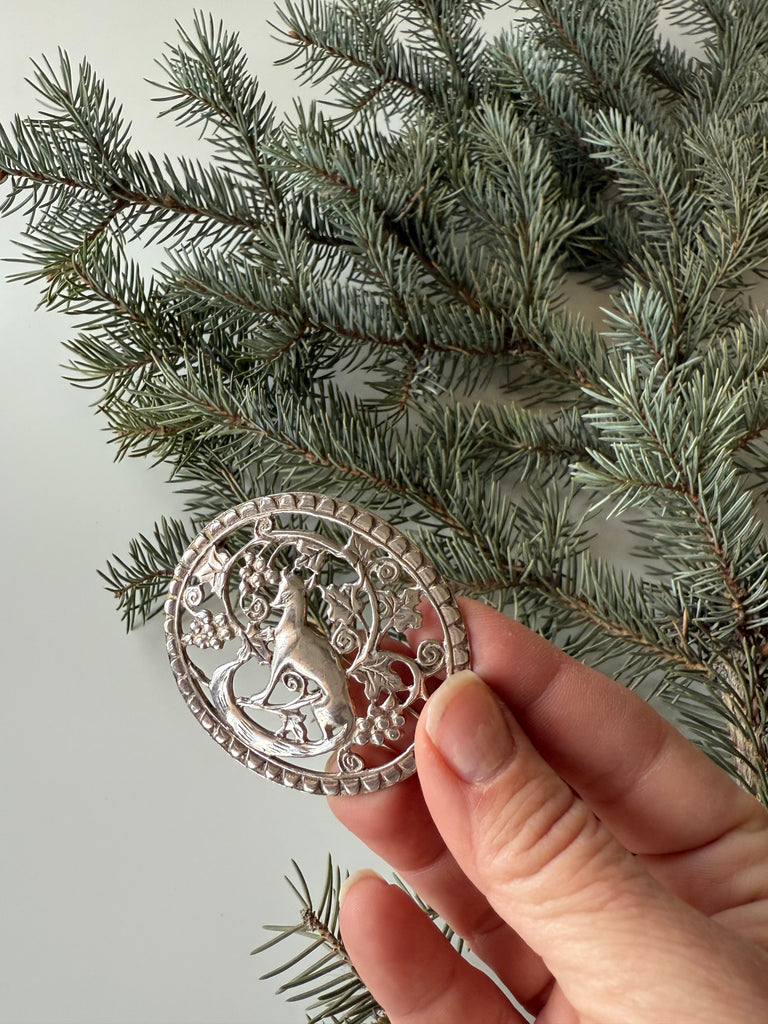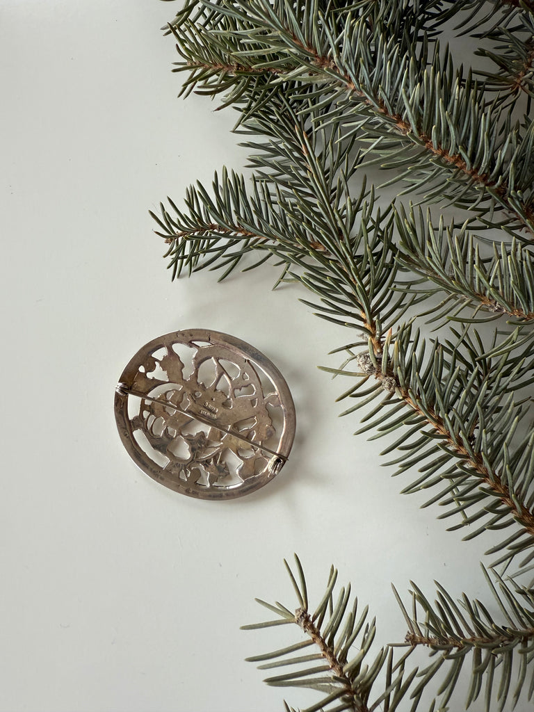 Vintage Sterling Silver Woodland Creature Brooch – Intricate Nature Scene