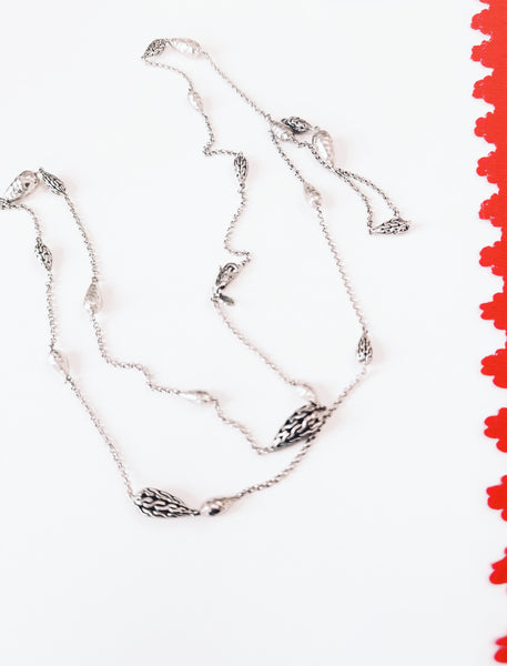 John Hardy Sterling Silver Necklace Bamboo Station Chain Vintage Designer Jewelry Handcrafted Bali $395.00