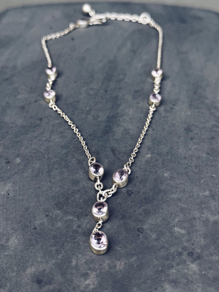 Sterling Silver Amethyst Station Necklace Vintage Purple Gemstone Chain Necklace February Birthstone Jewelry $195.00