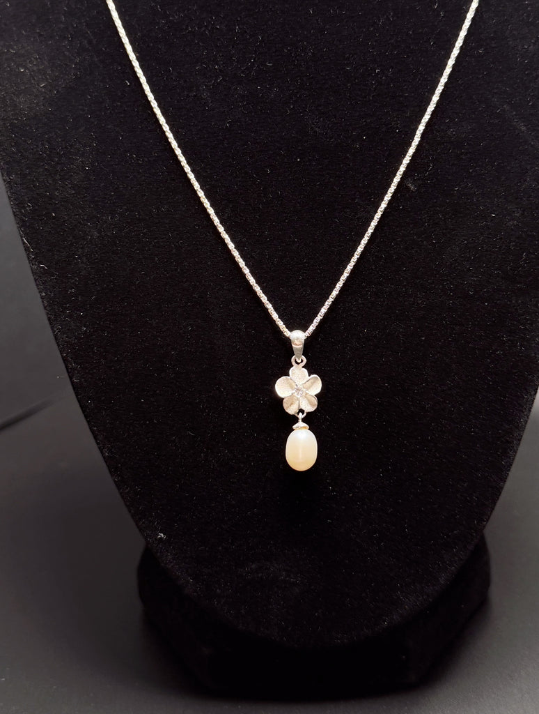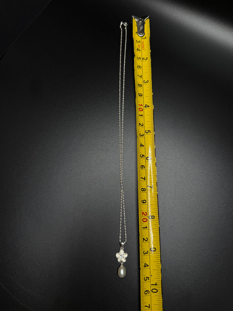 Beautiful vintage sterling silver necklace featuring a delicate flower and Pearl pendant hung on a gorgeous sterling silver chain. Perfect for gifting!
