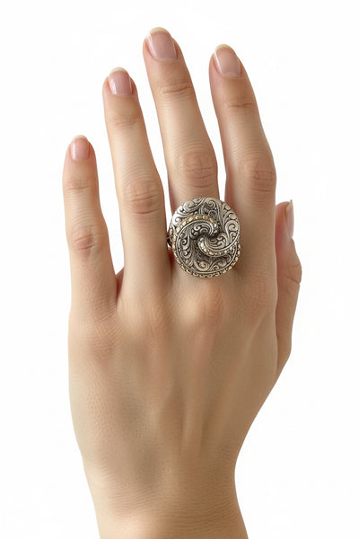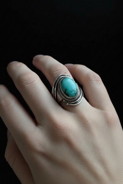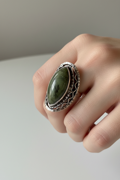 Handmade Silver Statement Ring Natural Green Gemstone Oval Boho Vintage Style Jewelry Unique Artisan Gift for Her $85.00