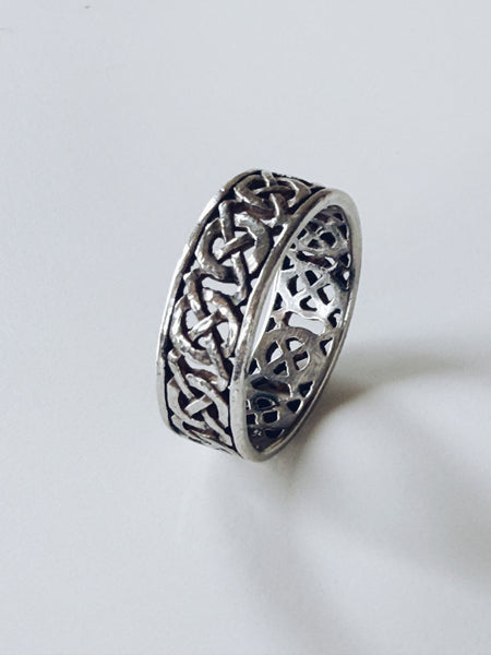 Vintage 925 Silver Celtic Knot Ring Wide Band Celtic Wedding Band Sterling Silver Irish Knot Ring Unisex Statement Band Size $55.00