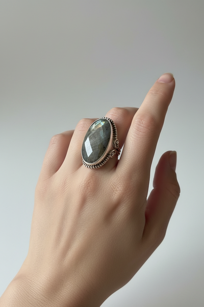 Sajen Faceted Labradorite Statement Ring Sterling Silver Large Oval Gemstone Ring Boho Cocktail Ring Unique Gift for Her $115.00