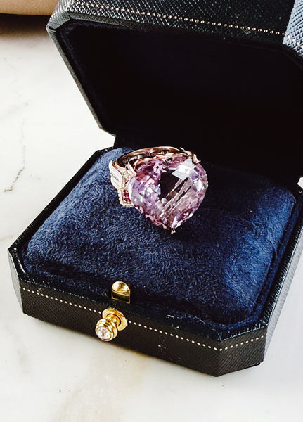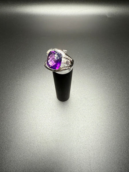 Vintage Amethyst Blue Sapphire and Diamond Ring in 14k White Gold Vintage Statement Gemstone Fine Jewelry $4,995.00