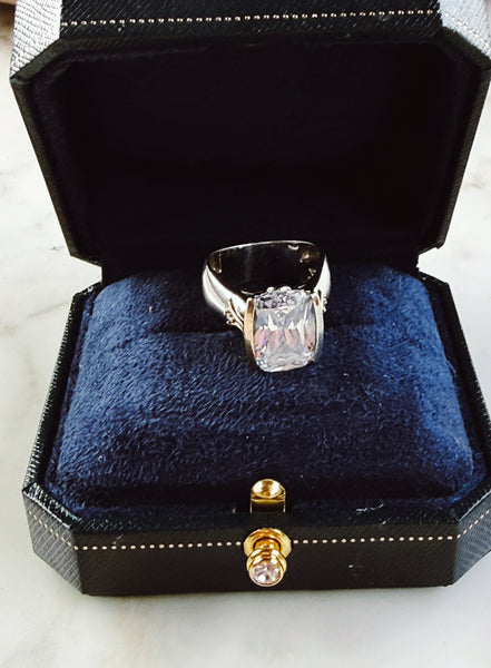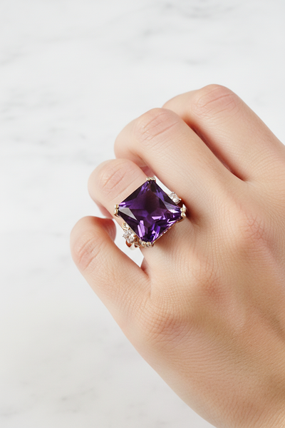 Large Amethyst Cocktail Ring | Palladium Silver Statement Ring | Natural Purple Gemstone Ring | Bold Vintage Style Jewelry $110.00