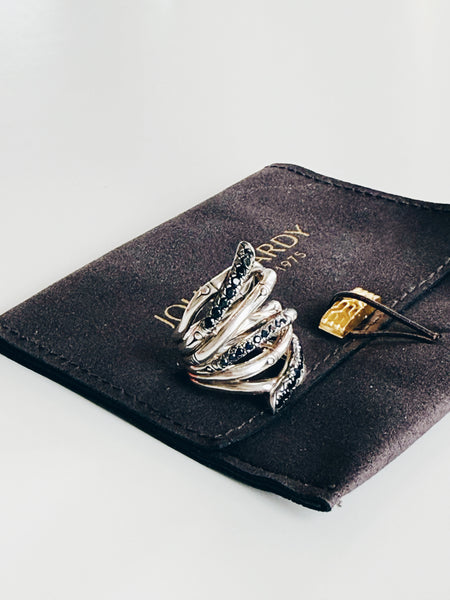 John Hardy Sterling Silver Pebble Cuff Bracelet and Matching Ring Size 7 Set Vintage Designer Jewelry Bali Crafted 925 Statement Jewelry $995.00