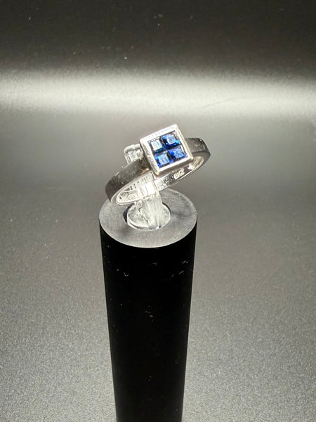 14k White Gold Sapphire Ring with Princess Cut Blue Stones Modern Vintage Style Statement Ring $750.00