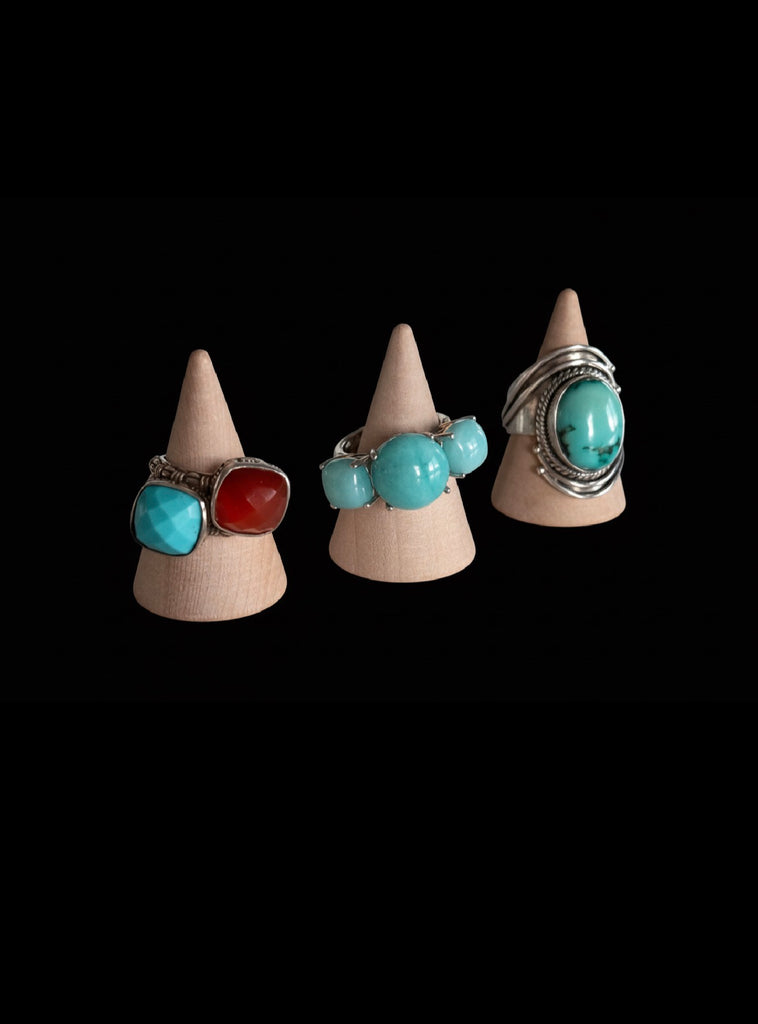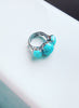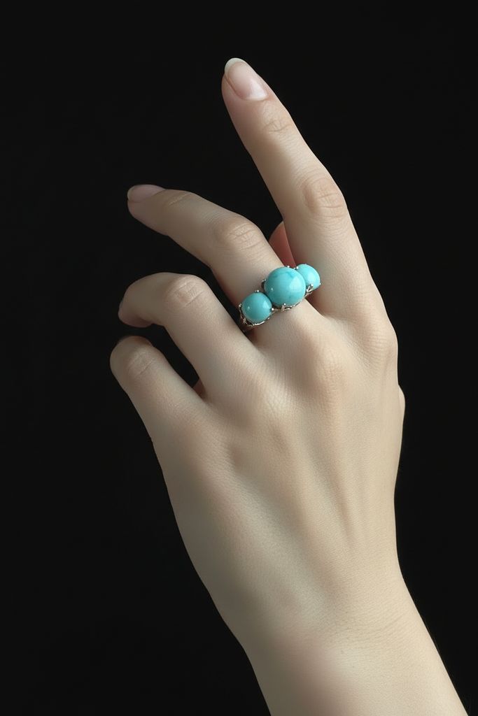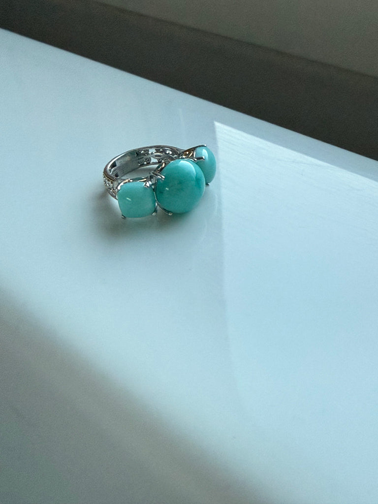 Add a touch of ocean-inspired elegance to your jewelry box with this stunning Palladium Silver Amazonite Three-Stone Ring. Featuring three smooth, natural amazonite cabochons in a gorgeous aqua-blue hue, this eye-catching gemstone ring is the perfect blend of vintage charm and modern design.