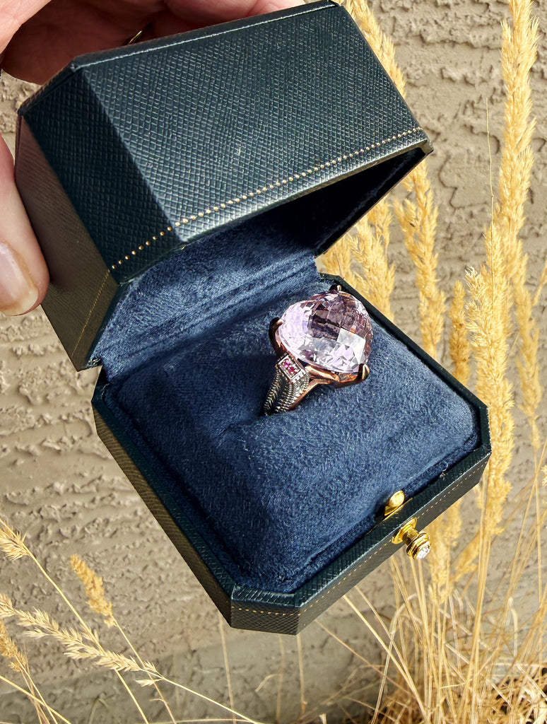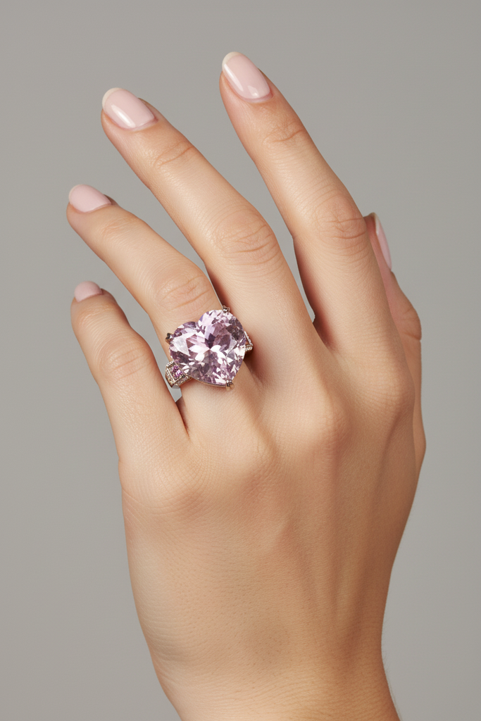 Heart Shaped Purple Stone Ring in Palladium Silver Cocktail Ring