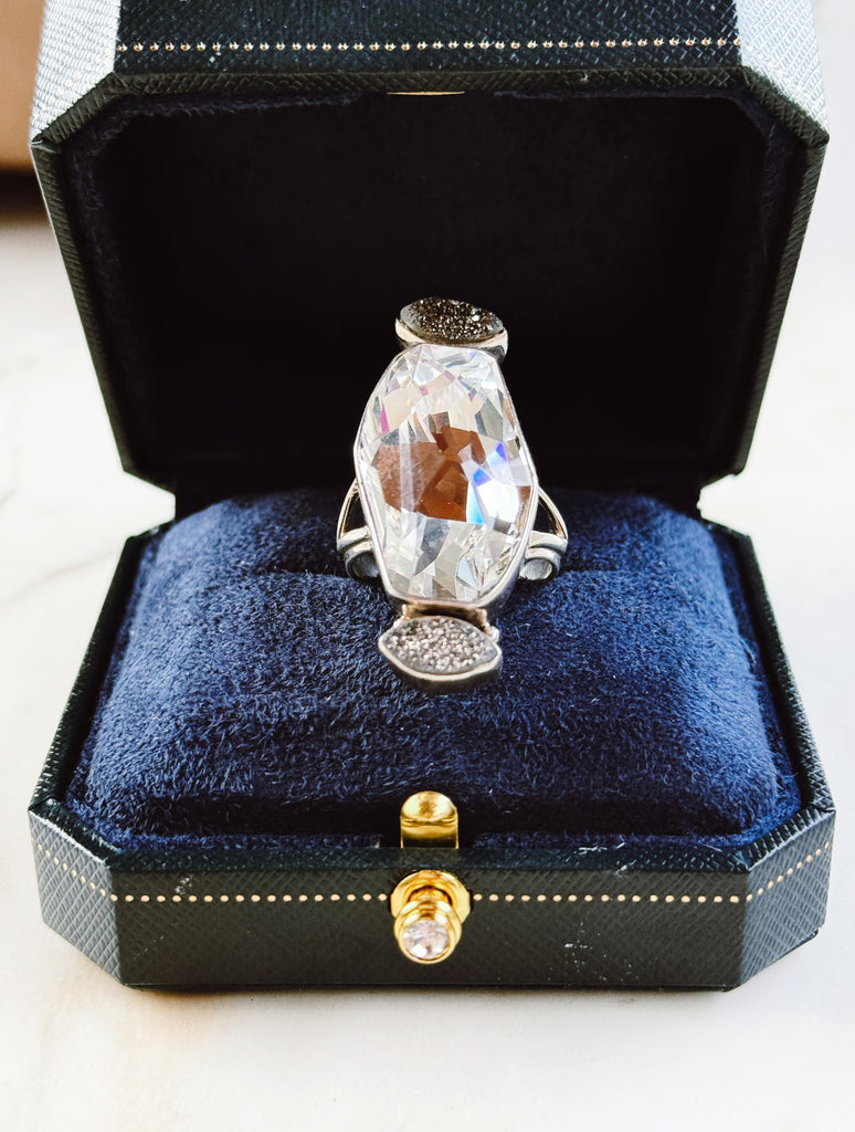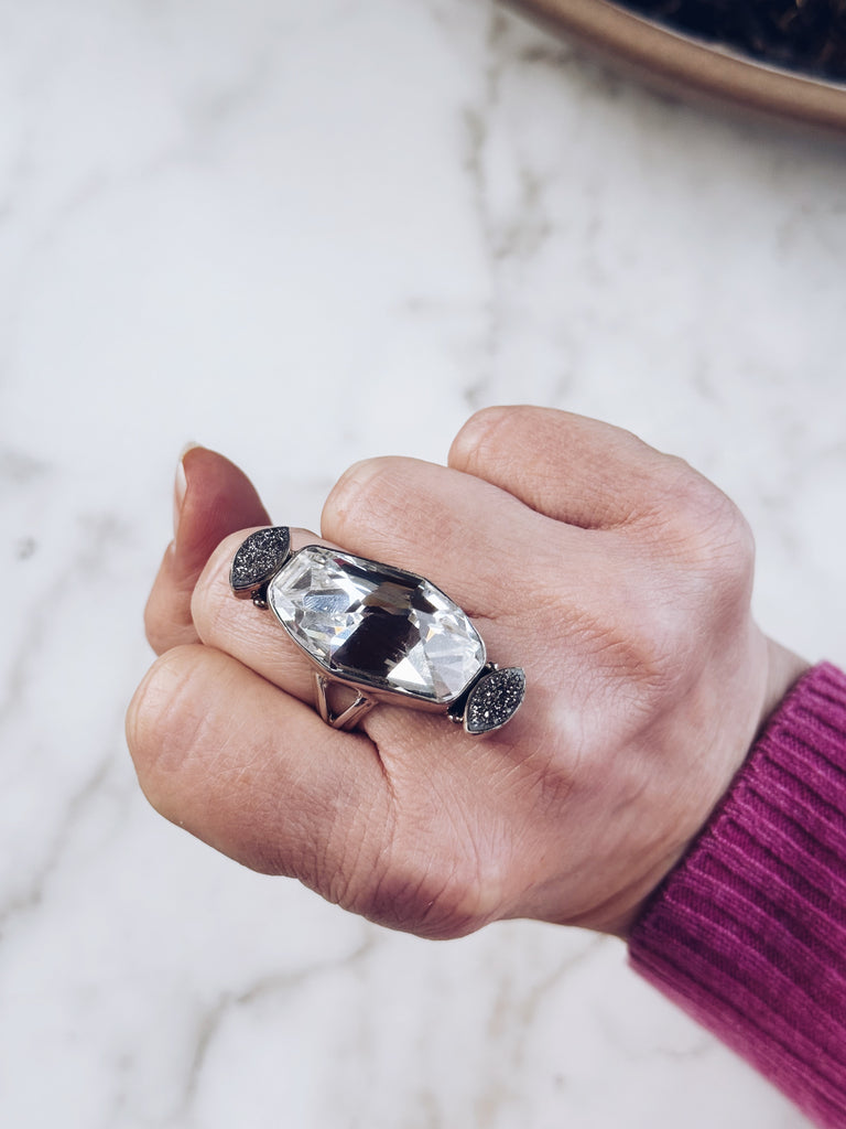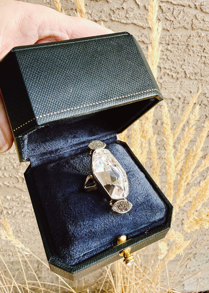 We are obsessed! Huge statement ring in our favourite combination of sterling silver and Marcasite. Size6.25 Stamped 925.