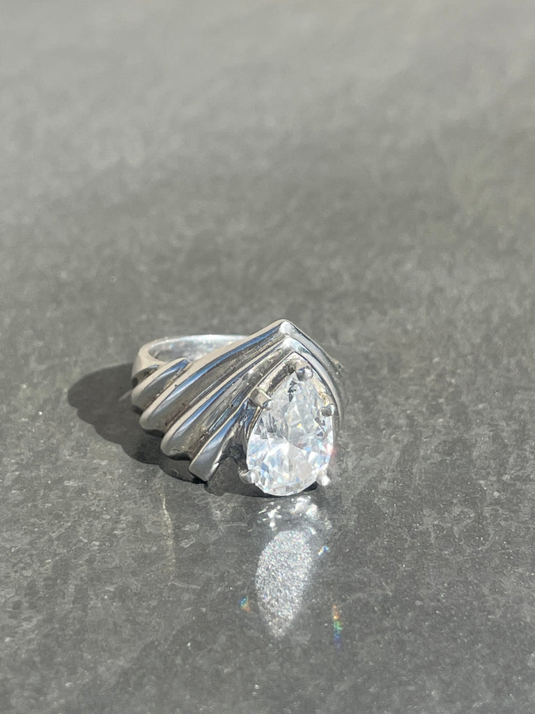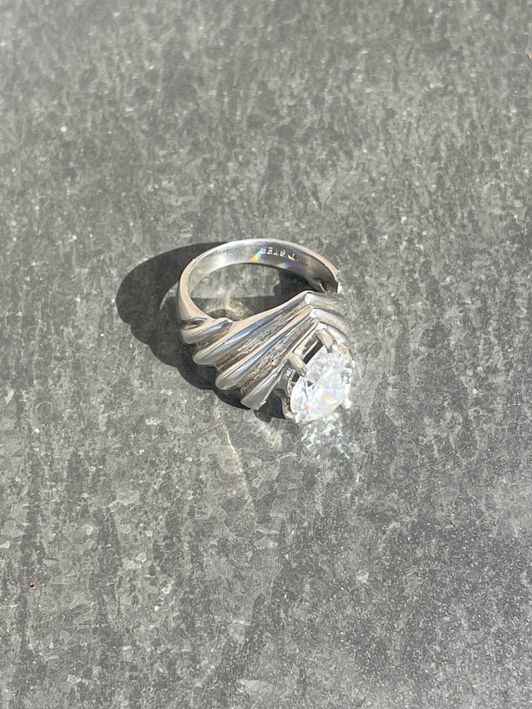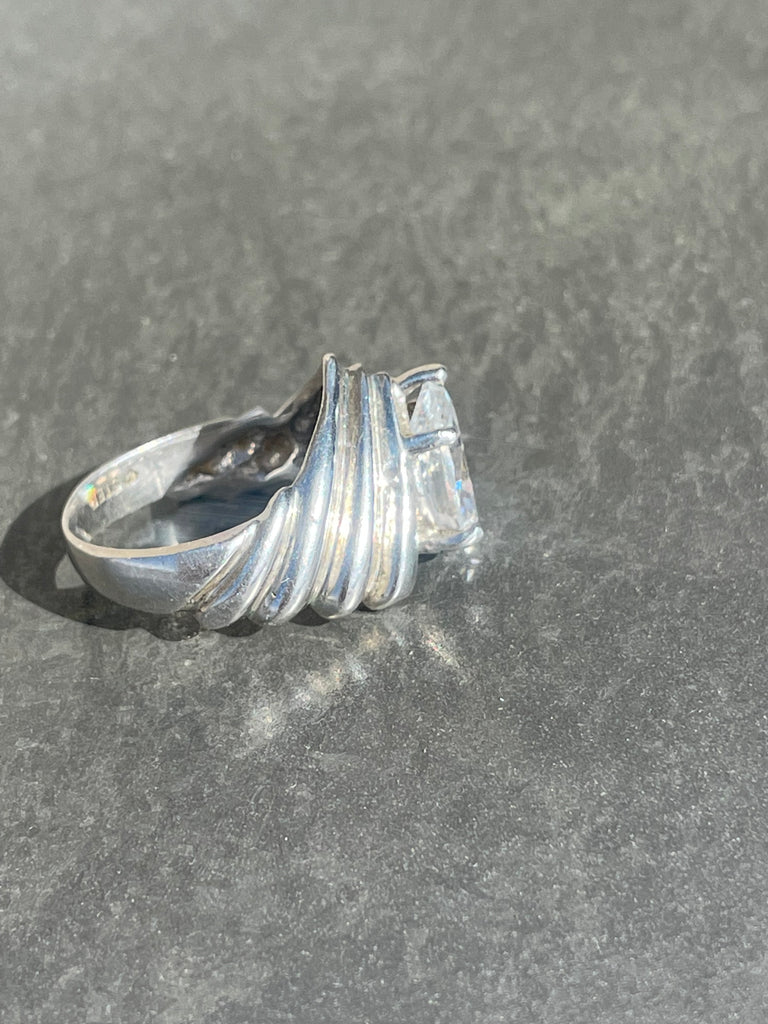 Want to make a big STATEMENT? This is your ring. Comfortable, big, and full of sparkle! Stamped sterling. Measures Size 9