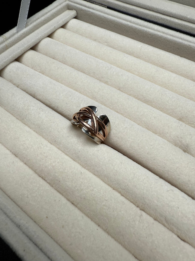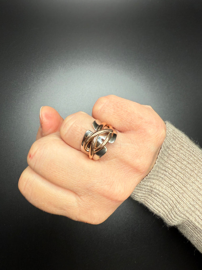 This ring effortlessly pairs with both yellow and rose gold accessories, making it one of the most versatile pieces you can own. Its artistic knot-like structure adds depth and texture while remaining comfortable enough for daily wear.