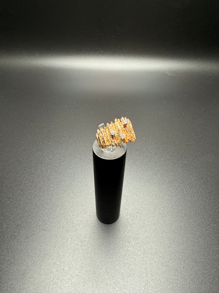 14k Gold Brutalist Ring Women Diamond Accent Ring Unique Gold Statement Ring Modern Art Ring Tiny Diamond Gold Ring Handmade 14k Jewelry Giftj $995.00