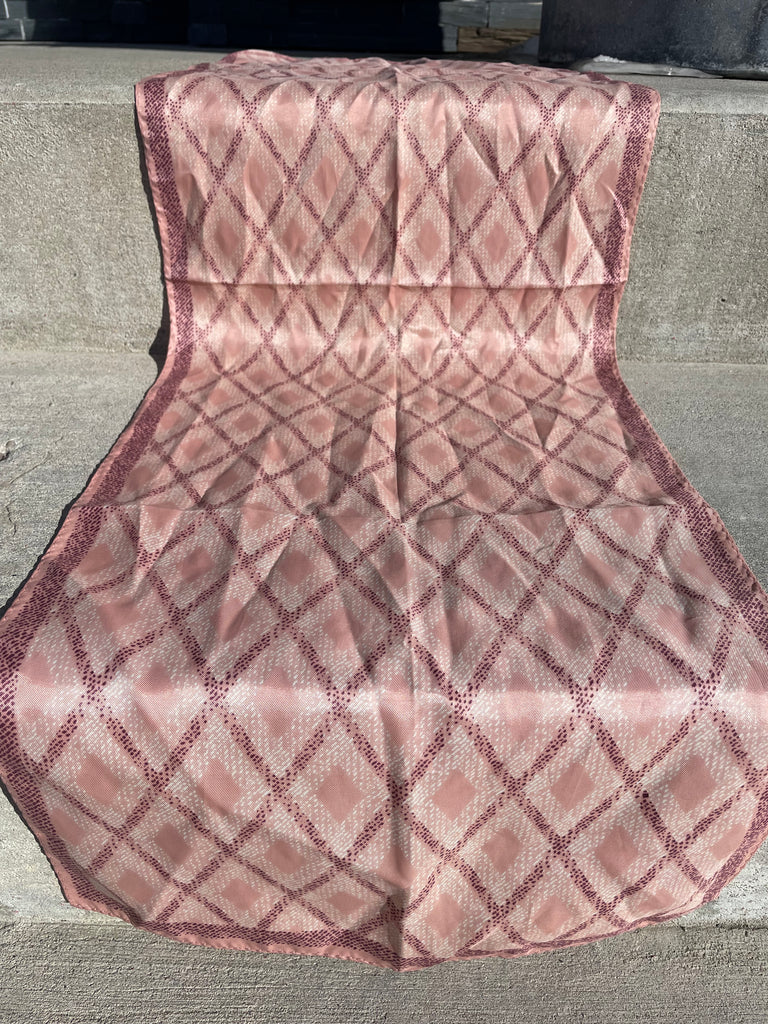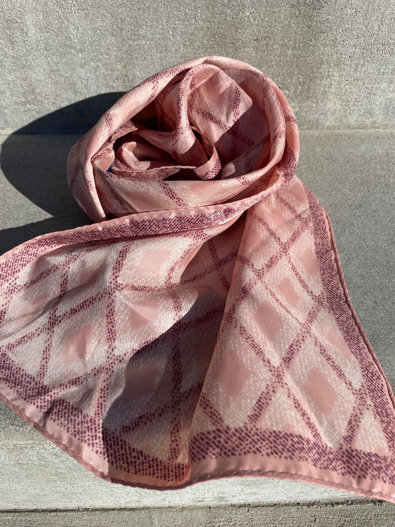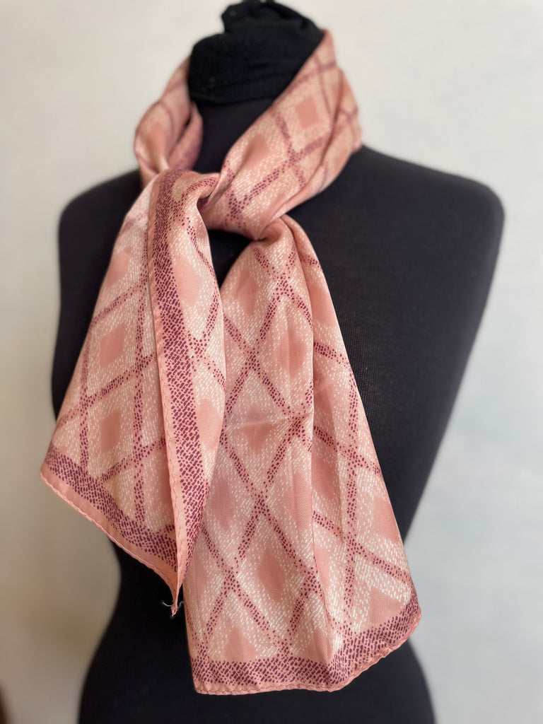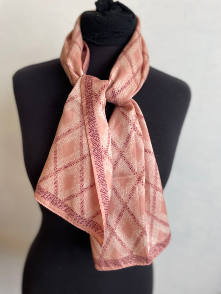 Beautiful vintage acetate scarf, with great 1970’s style. Soft muted colours, beautiful pattern. Made in Japan. Measures 13x43”