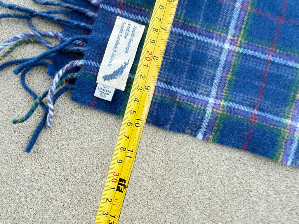 Vintage 100% Pure New Winter Wool Tartan Scarf – South Georgia & South Sandwich Islands – Blue Plaid – New Condition