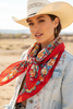 The vibrant floral pattern paired with the bold red frame makes this scarf a standout accessory for spring, summer, or year-round styling. Perfect for vintage lovers, western cowgirl looks, or anyone who loves timeless accessories with character.