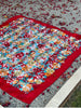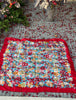 - Red border with multicolor floral print