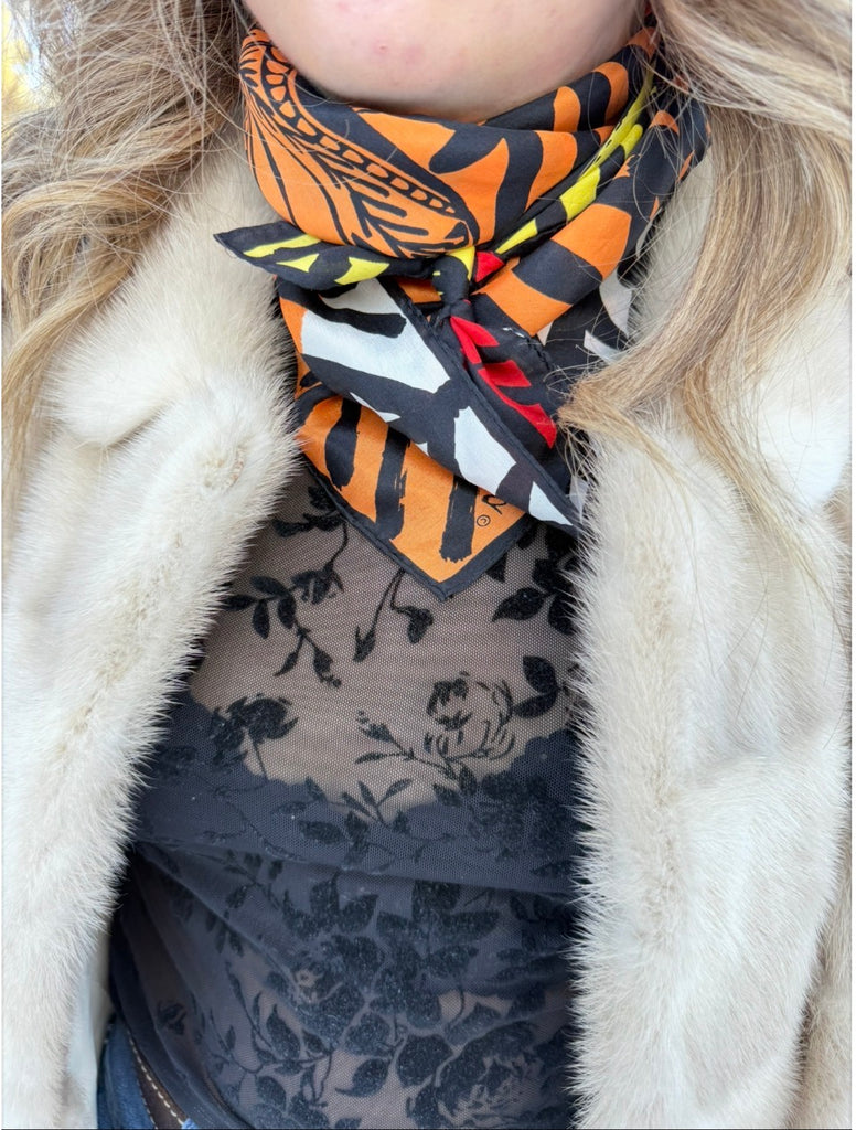 Vintage Designer Vera Newman Tribal Warrior Silk Scarf Western Wild Rag