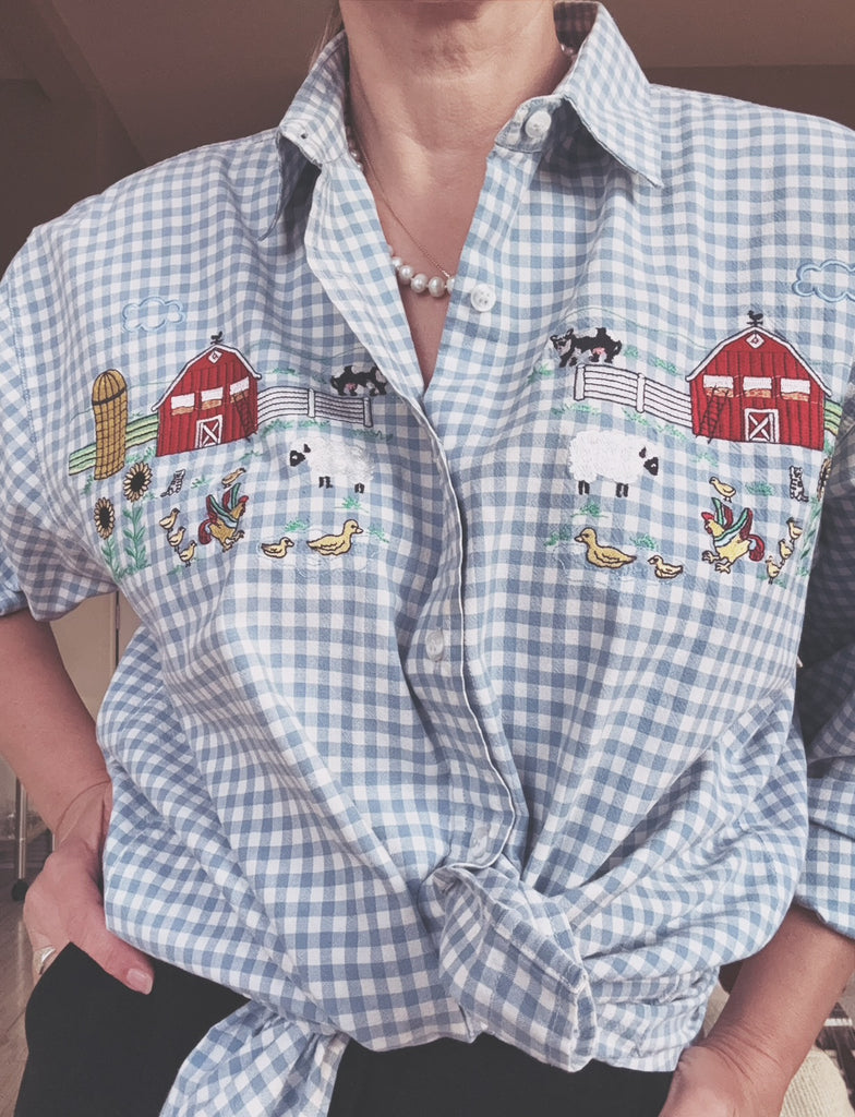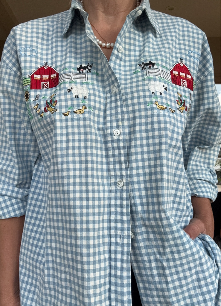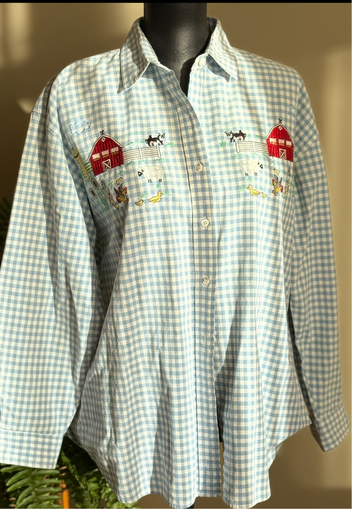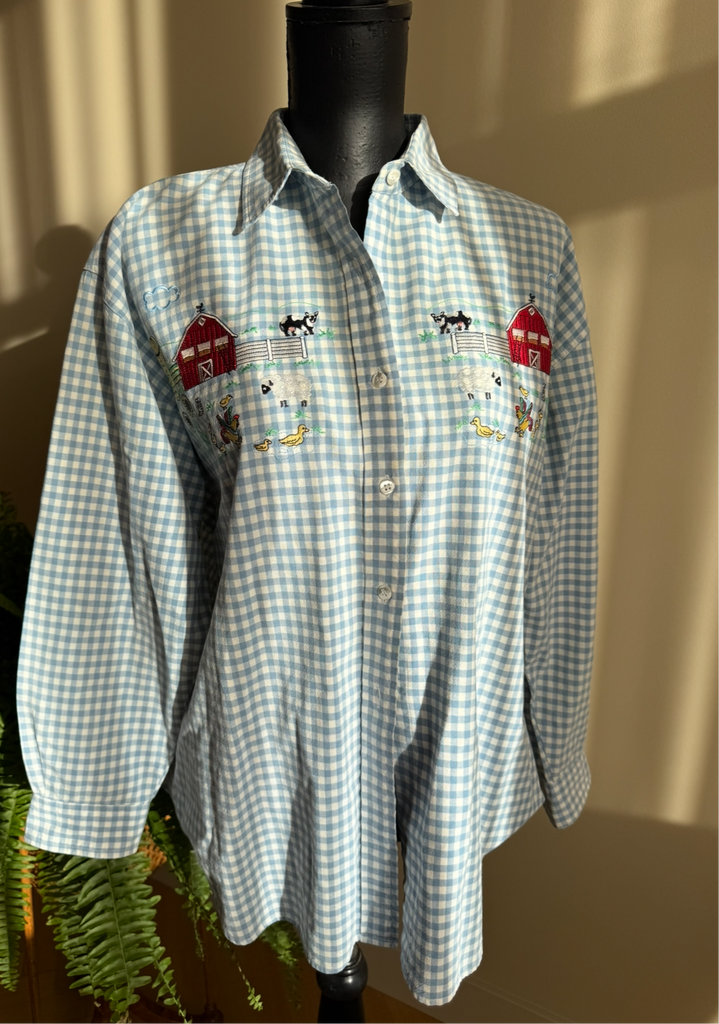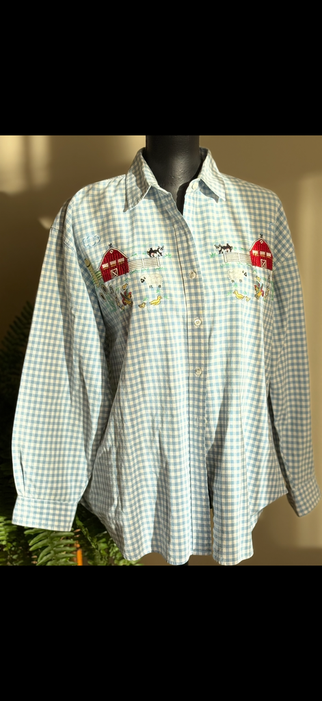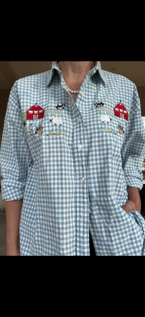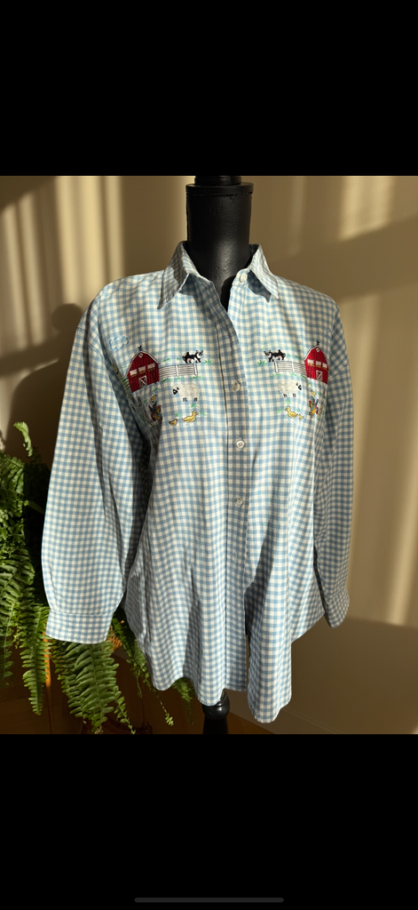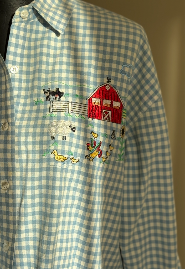 Super cute farm yard shirt by Casey Coleman, 100% cotton. Size medium. Comfortable and super adorable on.