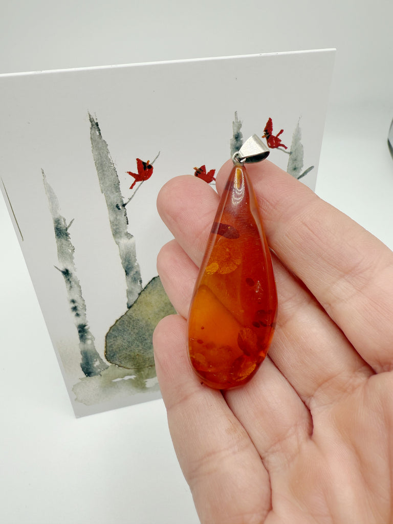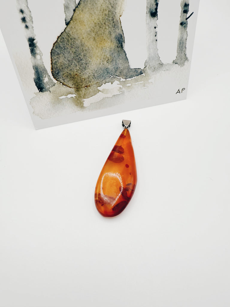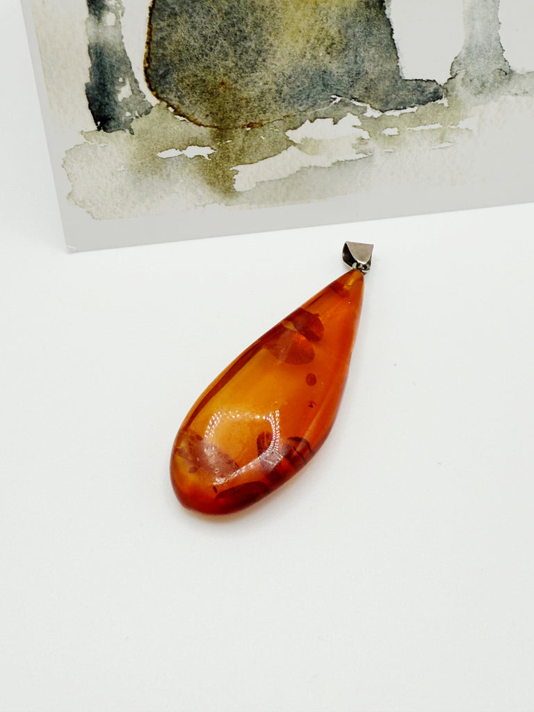 Bring warmth and natural beauty into your jewelry collection with this elegant amber teardrop pendant. Featuring rich cognac amber tones with unique internal inclusions, this piece captures the timeless look of Baltic amber jewelry. Suspended from a sleek silver-tone bail, this pendant is perfect for creating your own necklace or adding to your favorite chain.