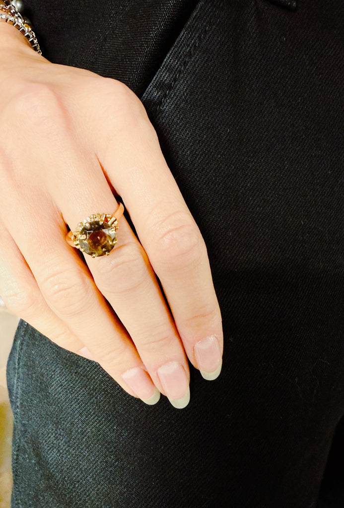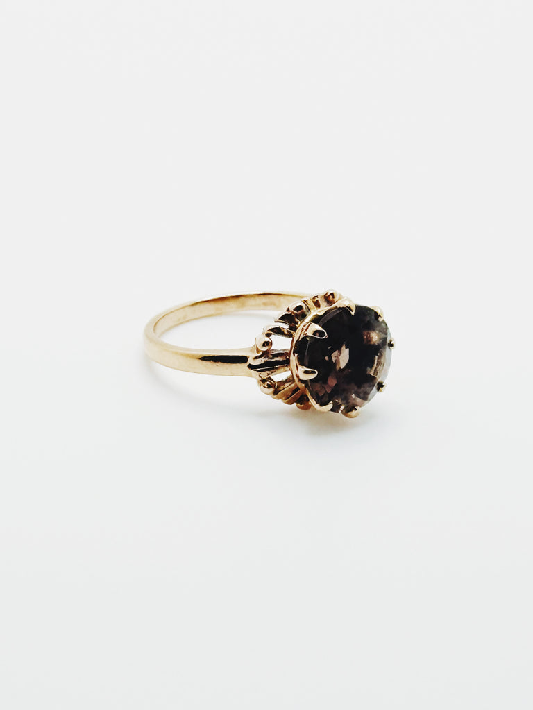 Stunning ladies vintage solitaire 10k gold ring with a gorgeous natural Smokey quartz stone. Come with current certificate of appraisal. Approximately size 6.5.