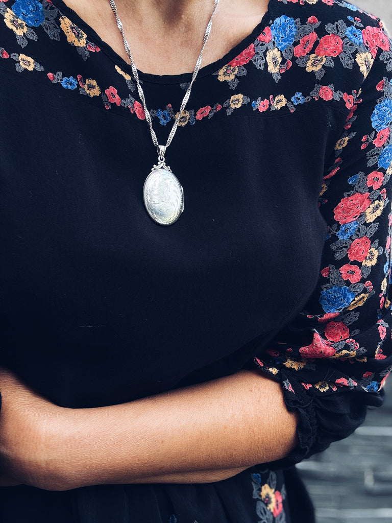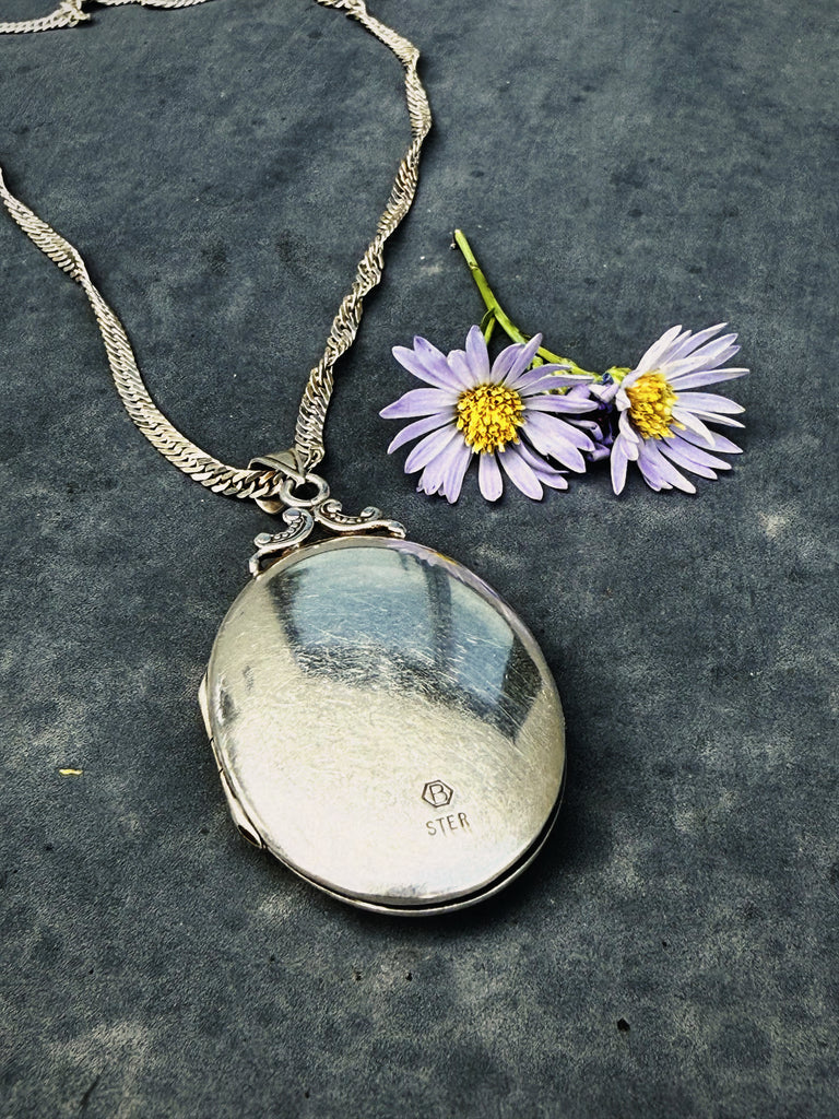 Lockets are always in style, and vintage ones are so incredibly special. Beautifully made by Birks Jewelry of Canada, stamped Sterling. Holds two pictures. Comes with elegant sterling silver chain that measures 20”.