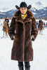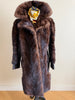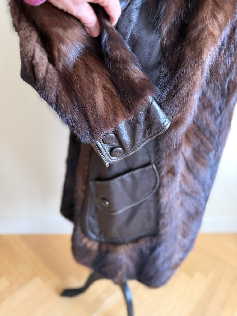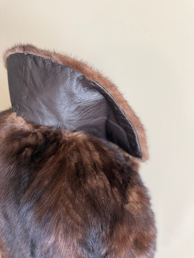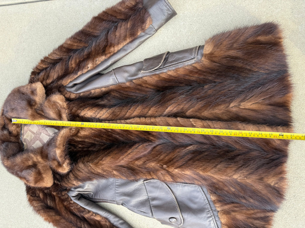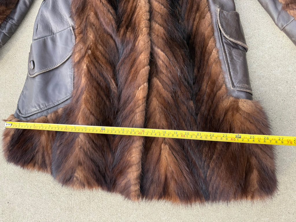 Vintage Mink Chevron Fur Coat with Leather Trim – Women’s Luxury Brown Fur Jacket