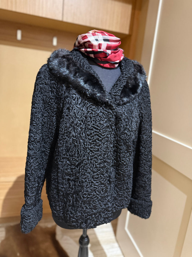 The curly Persian lamb fur gives this jacket its signature luxurious texture, while the mink collar adds a dramatic and sophisticated finish. This piece is timeless, glamorous, and incredibly well-made.
