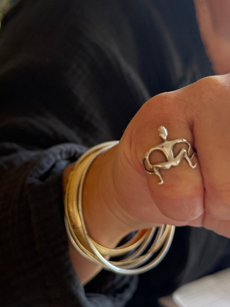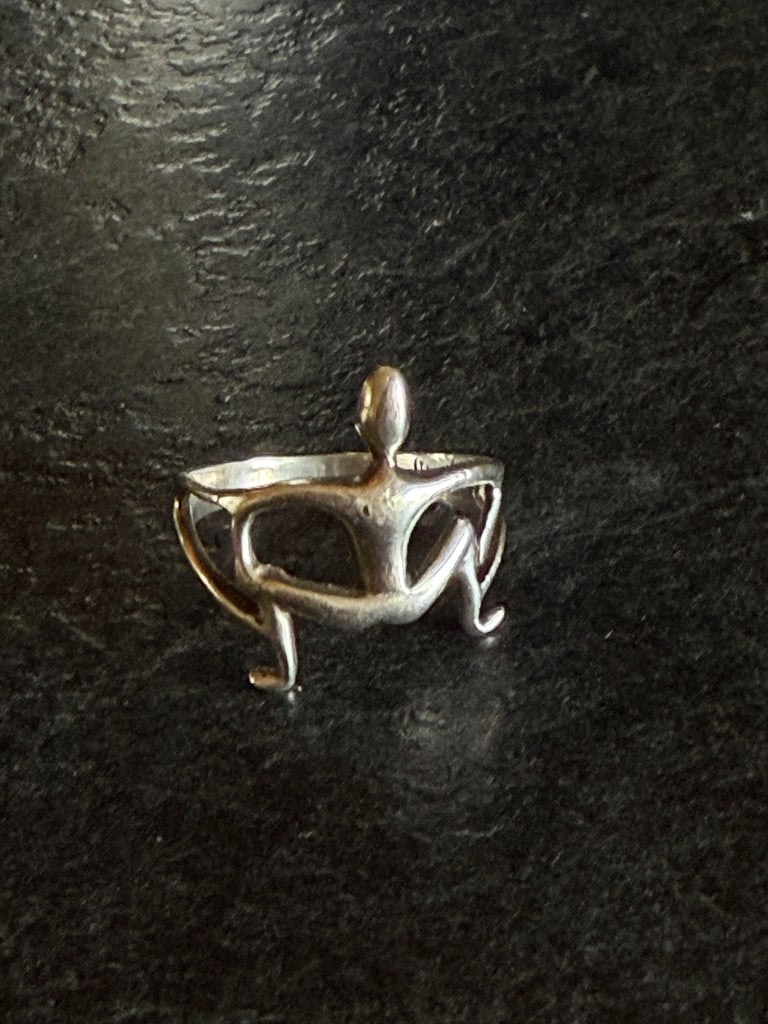 Modernist sterling silver ring depicting a minimalistic design of a person. For women or men. Size 6