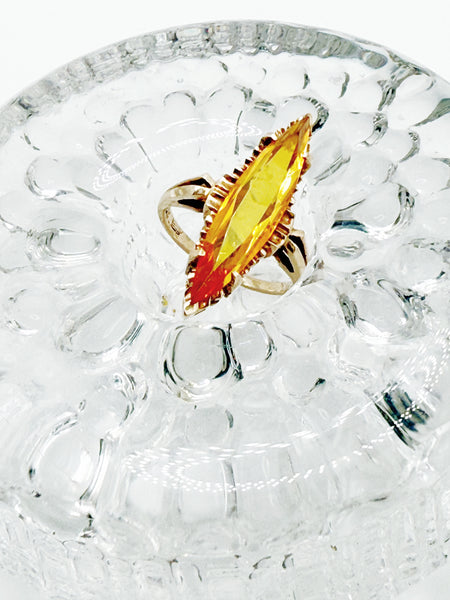 Vintage-Inspired 10-Carat Gold Ring | Golden-Yellow Diamond-Shaped Stone | 1960s–1970s Retro Glam $450.00