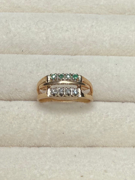 Vintage 14k Gold Diamond and Emerald Ring Estate Fine Jewelry Diamond Emerald Band Solid Gold Vintage Ring $1,500.00