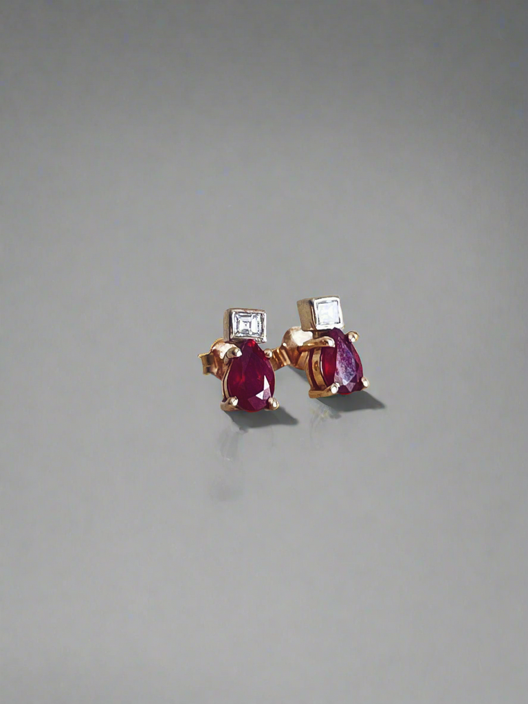 Need a pop of colour? A touch of red? Fabulous vintage 10k gold earrings in bold cherry red ruby accented with a brilliant diamond! Unique shape, lots of sparkle, fabulously vintage! These come with a current professional appraisal.