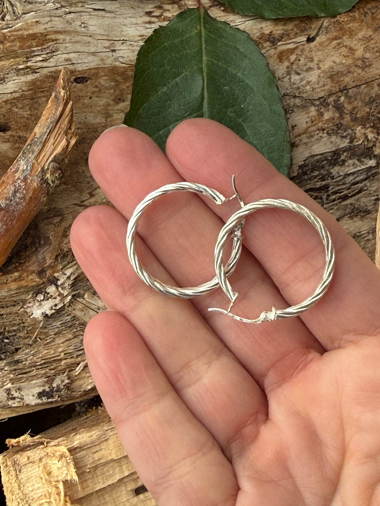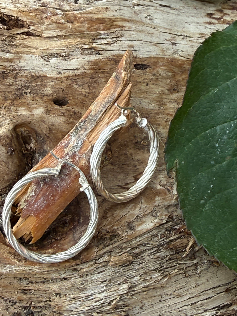 Timeless with a subtle twist — these vintage 925 sterling silver hoop earrings feature a textured, twisted design that adds just the right amount of detail.