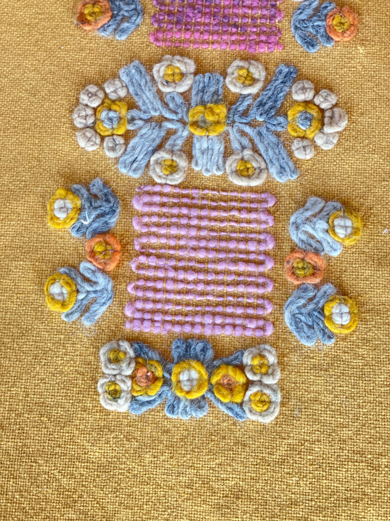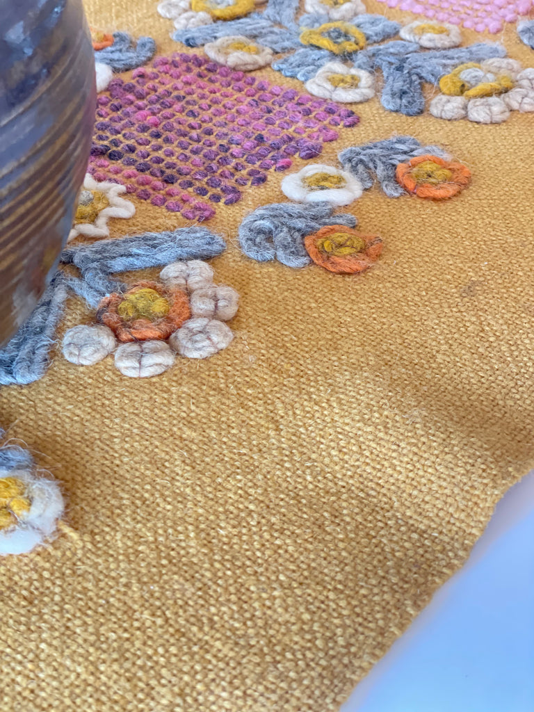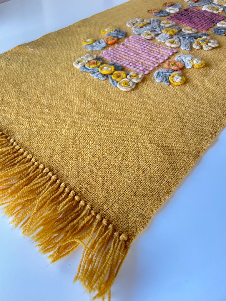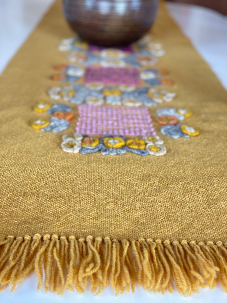 Hand made, mid century wool table runner, made in Poland. Incredible craftsmanship, excellent condition. One of a kind! Measures 17.5x70”