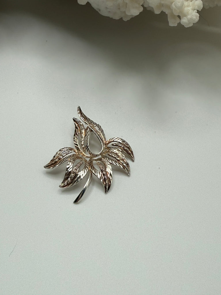 Sterling silver Modernist brooch by Andreas Daub, featuring an elegant sculptural floral design with flowing organic lines. This German-made mid-century piece showcases the refined craftsmanship and minimalist aesthetic associated with Modernist jewelry.